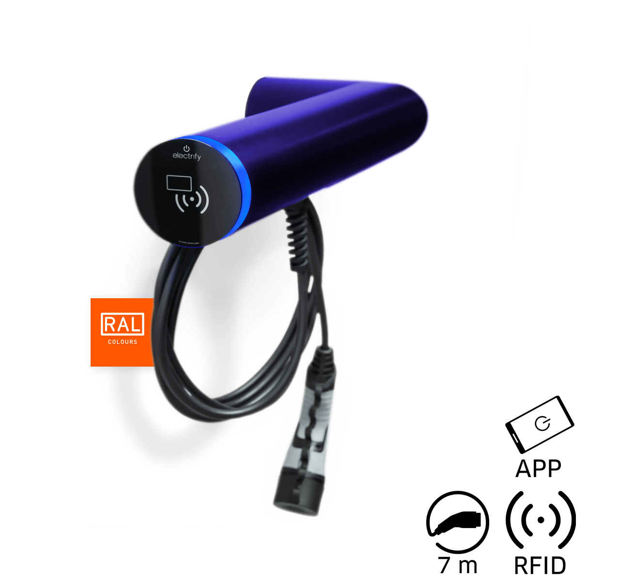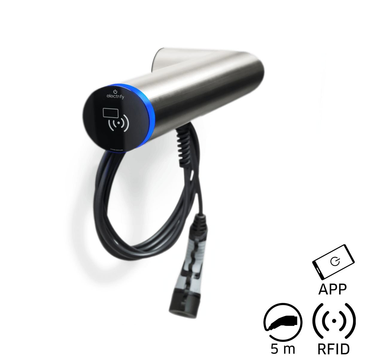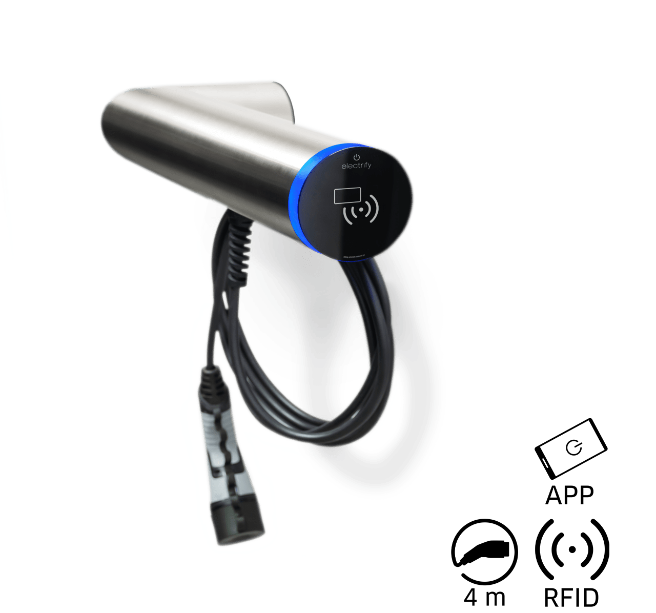 - Authorisation via RFID, smartphone via eCC App (electrify Charge Control) or Plug & Start