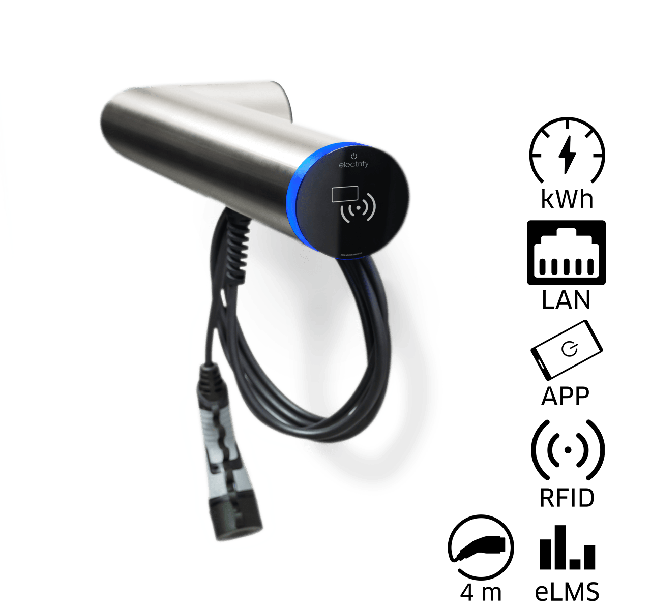 - Authorisation via RFID, smartphone using eCC App (electrify Charge Control) or Plug & Start